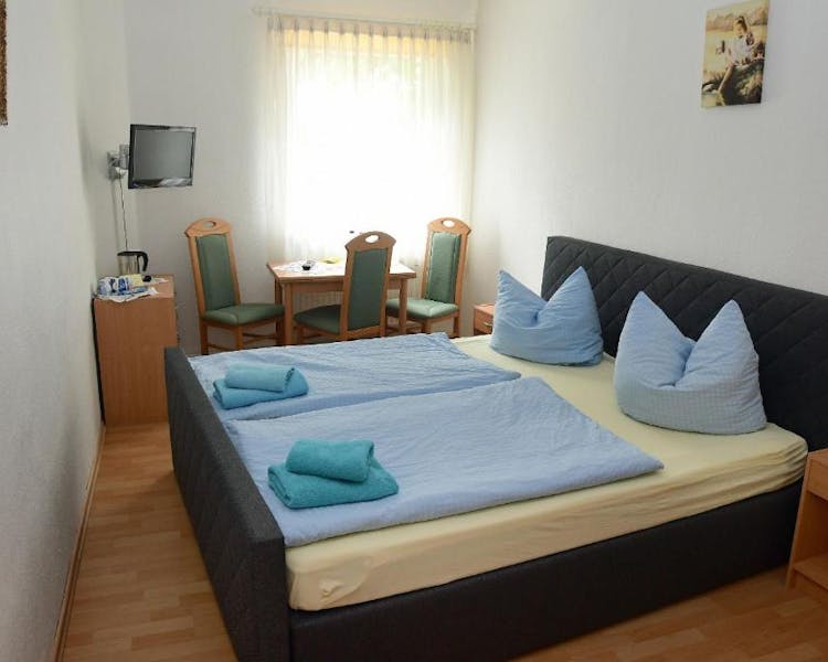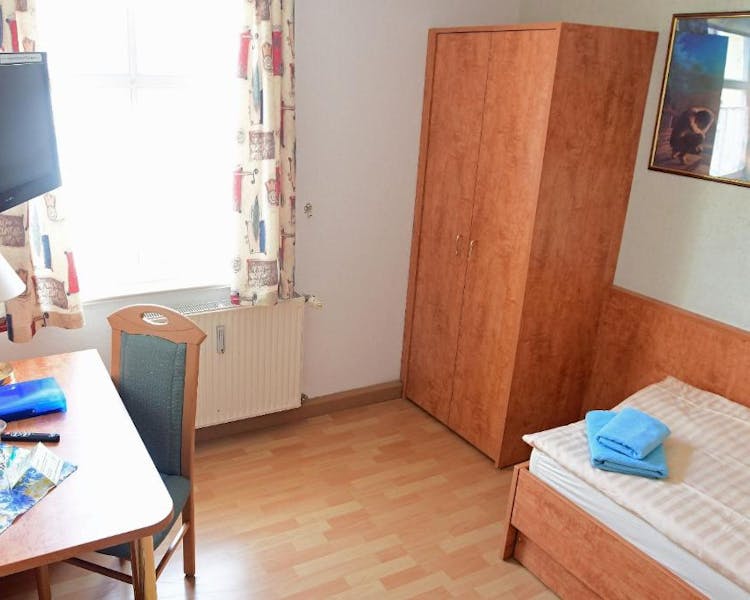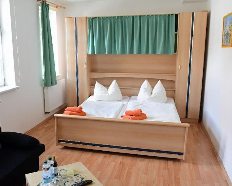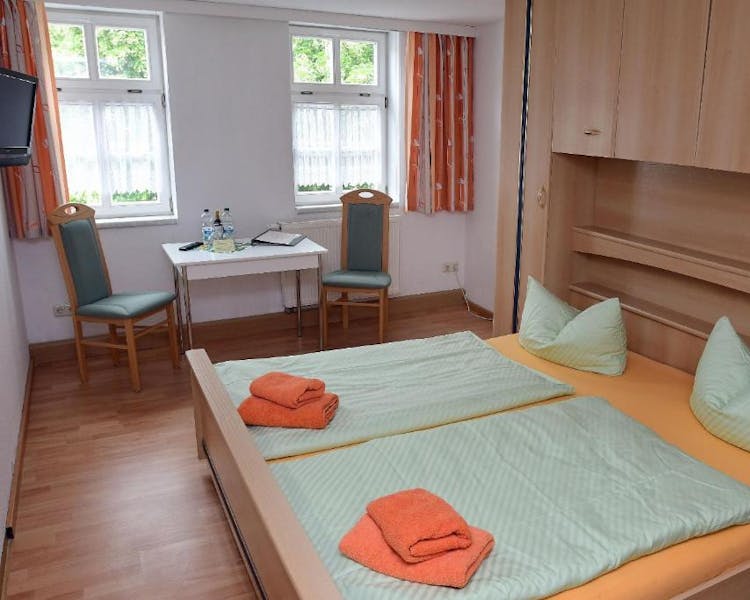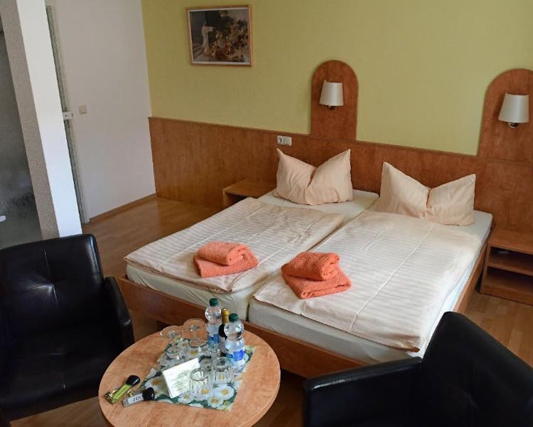 Welcome to the historic ambience of our listed hotel garni, in the middle of the old town of the Bach town of Arnstadt. In addition to single and double rooms, our house also offers family rooms, holiday apartments and a variety of dining options in the immediate vicinity. The house has a large sun terrace, a beer garden, a lounge, a snack room for when you're hungry and thirsty, and breakfast from the buffet. For large groups of at least 30 people staying overnight or 50 people in combination with overnight stays, we also offer wedding buffets in our in-house baroque hall, or for family reunions, class reunions, etc. in our fireplace room.