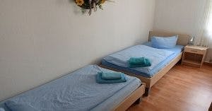 - 2 Schlafzimmer mit 1x Doppelbett und 1x zwei Einzelbetten